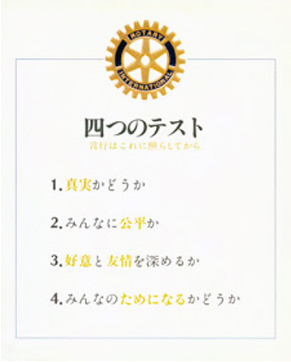 第4:奉仕の理念で結ばれた職業人が、世界的ネットワークを通じて、国際理解、親善、平和を推進すること。