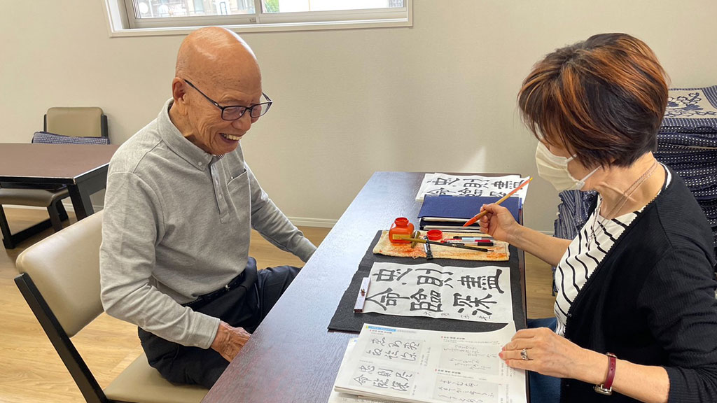飯島彩峯師範から、漢字・仮名・硬筆の3教科を学んでいます。また、月1回は清書を東洋書道芸術学会に提出して昇給・昇段を目指しています。食事やお茶会なども実施して親睦を深めながら書道を楽しんでいます。