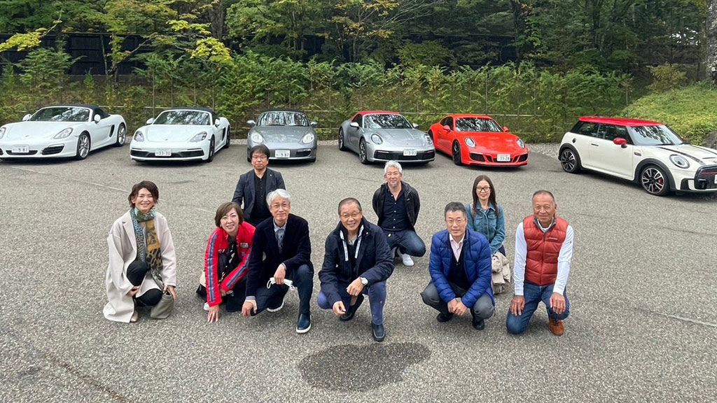 スポーツカー同好会では、車好きのメンバー同士で年に数回ツーリングを実施しています。複数台の車で出発し、数か所の休憩ポイント経て厳選した美味しいお店でみんなで食事をしながら同じルートを走ります。ルートには毎回絶景名所、観光地、施設見学などを織り込んだ楽しい内容になっております。